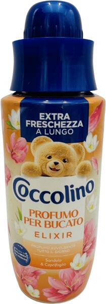 Coccolino Sandalo&Caprifog öblítő koncentrátum elixír 342 ml Fás elegancia és loncvirág – nyugalom és lágyság minden mosásban Ez a Coccolino Elixir öblítő parfüm egy  meleg, fás alapú illat , amelyet a  loncvirág  finom, virágos árnyalatai tesznek kiegyensúlyozottá. Egyedülálló választás, ha a természetes és elegáns illatokat részesíted előnyben. Főbb előnyök