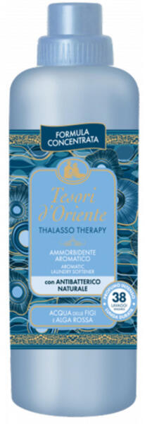 A Tesori d'Oriente Thalasso Therapy koncentrált öblítő a Fidzsi-szigetek paradicsomi hangulatát és az azúrkék tenger finom illatát hozza a ruhaneműbe. Puhává és hosszan tartó illatúvá teszi a ruhaneműt és a ruhákat. Az öblítőt illatosított mikrokapszulákkal dúsították, amelyek fokozatosan finom és érzéki illatot szabadítanak fel. A színezék nélküli krémkompozíció lágyítja a szálakat és megkönnyíti a vasalást. Az illatkompozíció a kristálytiszta víz, a sós tengeri levegő és az egzotikus növények harmonikus elegyéből született, amely minden mosás után egy friss, revitalizáló érzetet hagy a ruhákon. A mikrokapszulás illattechnológiának köszönhetően az öblítő hosszan tartó és folyamatosan felszabaduló aromát biztosít, amely minden mozdulattal újra és újra életre kel. Az illatkapszulák fokozatosan nyílnak meg, így a ruhák még napok múltán is megőrzik ezt a különleges, finom tengeri illatot. A Tesori d’Oriente Thalasso Therapy öblítő nemcsak az érzékeket kényezteti, hanem a textíliákról is gondoskodik. A színezékmentes, kímélő krémformula mélyen behatol a szálakba, segít megőrizni a ruhák lágyságát és rugalmasságát, így azok puhák és selymes tapintásúak maradnak. Emellett a formula elősegíti a gyűrődésmentes végeredményt, megkönnyítve ezzel a vasalást, hogy ruhái mindig tökéletes megjelenést nyújtsanak. Merüljön el a Tesori d’Oriente Thalasso Therapy öblítő nyugtató és felfrissítő világában, ahol minden mosás egy újabb érzéki utazás a tengerparti paradicsom illatával! Akár 38 öblítésre is elegendő. Jellemzői: Hozzáadott színezőanyagok nélkül Kellemes, intenzív illat Megkönnyíti a vasalást Bőrgyógyászatilag tesztelt
