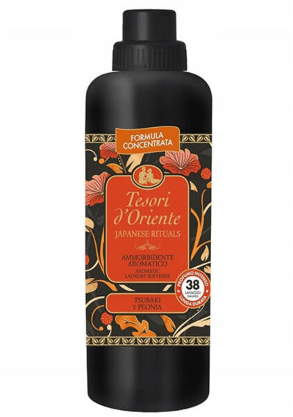 A Tesori d'Oriente Tsubaki e Peonia/Japanese Rituals koncentrált öblítő bazsarózsa, frézia és pacsuli elegáns virágillatával puhává, bolyhossá és illatossá teszi a ruhaneműt. Parfümös mikrokapszulákat tartalmaz, amelyek minden mozdulattal fokozatosan intenzív illatot szabadítanak fel. A színezék nélküli krémkompozíció gondoskodik a rostszerkezetről és megkönnyíti a vasalást. Illatjegyek: