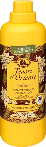 Tesori d’Oriente Vaniglia e Zenzero szuperkoncentrált öblítő (760 ml) különleges, hosszan tartó vanília és gyömbér illattal. Mikrokapszulás technológiája fokozatosan szabadítja fel az illatot, textíliáid selymesek, puhák és könnyen vasalhatók maradnak.