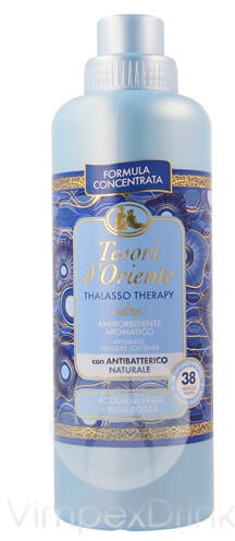 A Tesori d Oriente márka ikonikus, keleties illatai megérkeztek otthonába is! A Thalasso Therapy öblítő friss, üdítő, tengerparti illatú, antibakteriális tulajdonságokkal rendelkező vörösmoszattal gazdagítva. Értékes mikrokapszulákat tartalmaz, melyek fokozatosan szabadulnak fel tapintáskor, vasalás alatt vagy a ruha viselése során. Ennek az új technológiának köszönhetően erősebb és hosszabban tartó illatintenzitást nyújt. Krémes formulája színezékmentes, lazítja a textilszöveteket és megkönnyíti a vasalást.